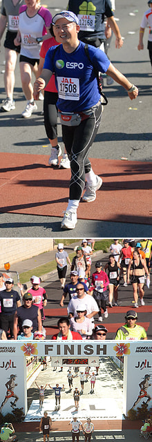 しかし、18キロ地点でトイレに30分間並んだ結果、身体が冷えてまったく走れなくなり、それ以降はずっと歩いてFinishを目指しました。
